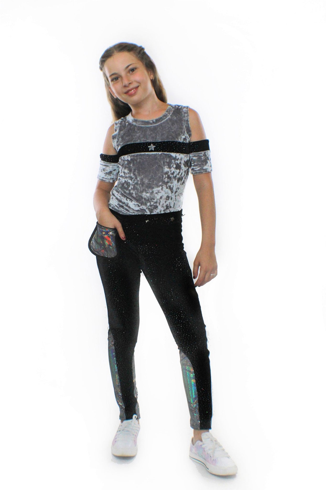 This soft and stretchy pants, glimmer with its multi color glitter. The flattering cut, combined with the holographic sequins creates the perfect look.