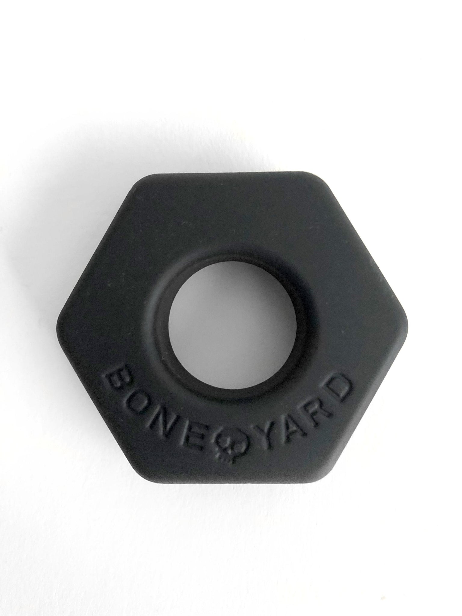 The Boneyard Bust a Nut cock/ball ring is all a man needs for hours of pure unadulterated fun. The powerful and iconic Boneyard-branded and engraved design has a sleek and soft touch silicone finish and features a superior and durable stretch.
