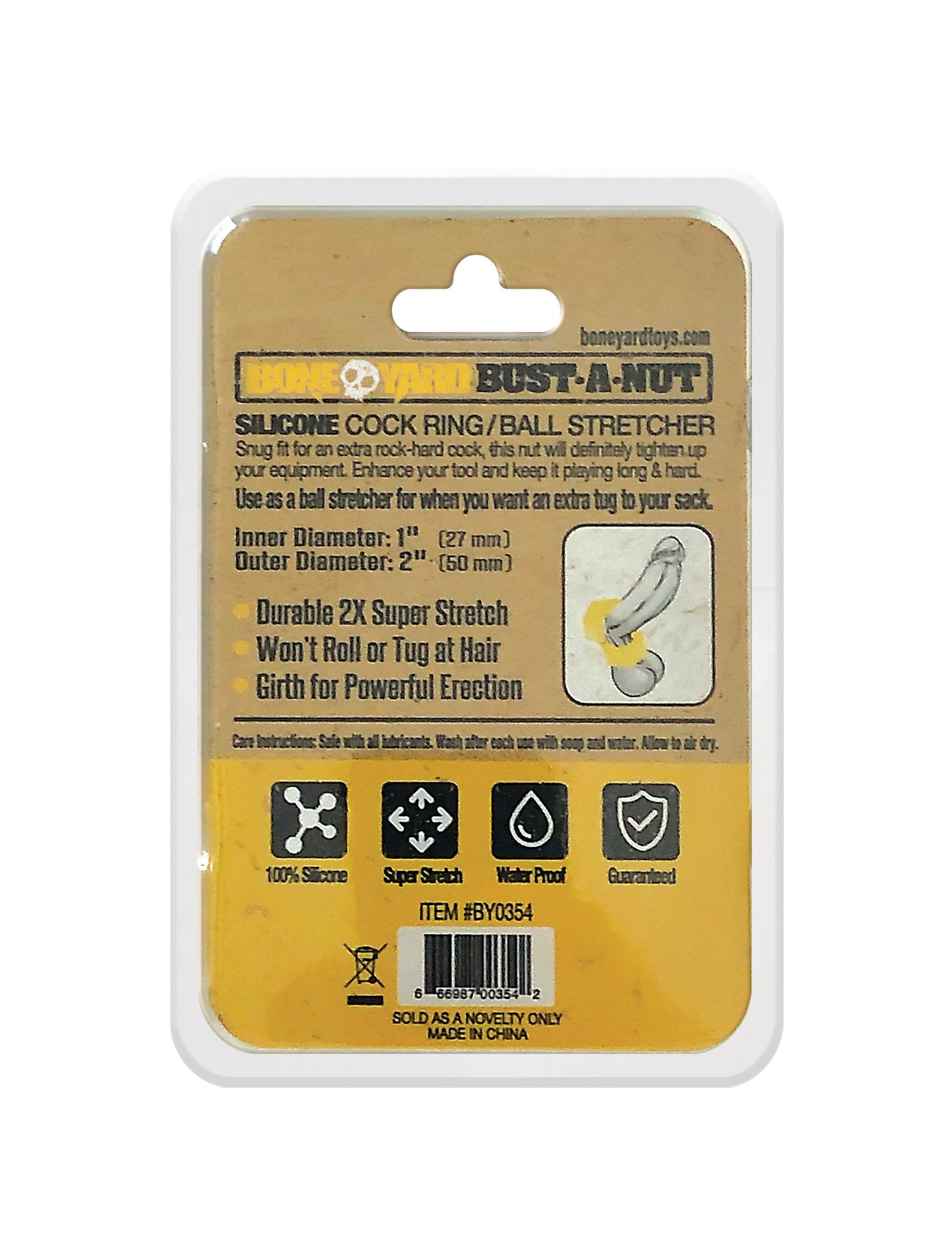 The Boneyard Bust a Nut cock/ball ring is all a man needs for hours of pure unadulterated fun. The ring is designed with superior materials and production thus increasing both comfort and lifespan. The powerful and iconic Boneyard-branded and engraved design has a sleek and soft touch silicone finish and features a superior and durable stretch.