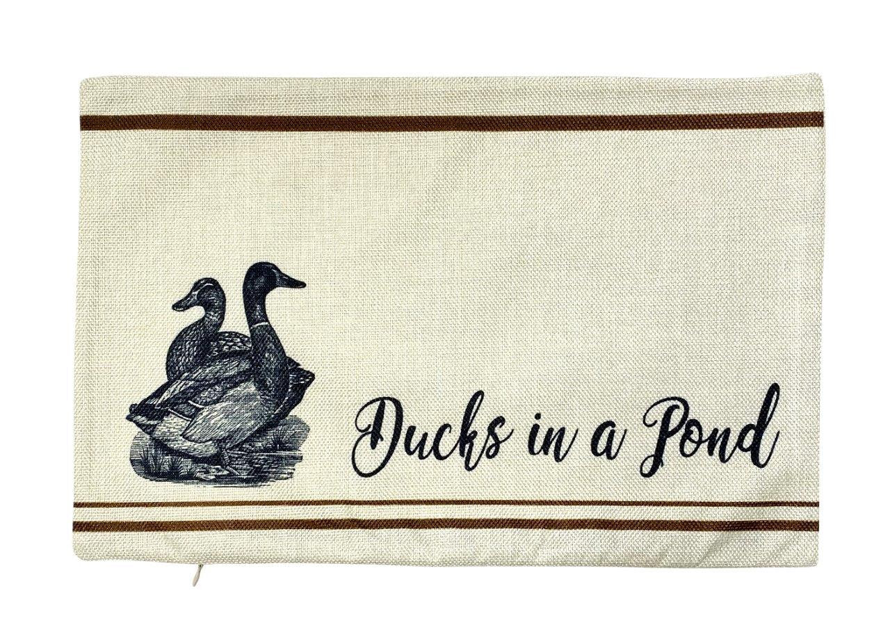 Ducks in a Pond | Pillow Cover | 18 x 12 | Primitive Decor | Vintage