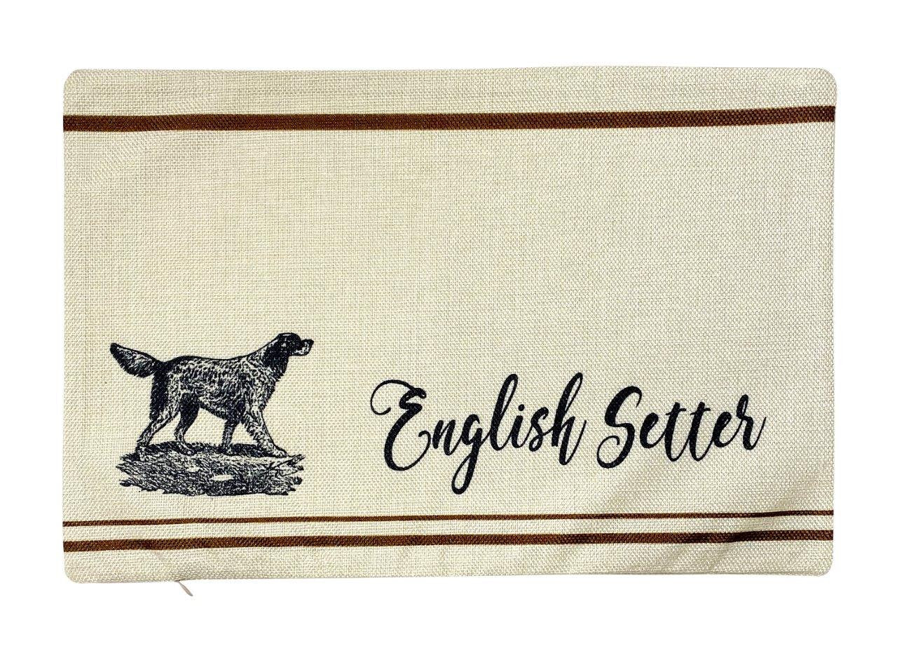Part of our Farmhouse Collection. A classic Farmhouse Design featuring vintage hunting dog and the words "English Setter". Pair with any of the other farmhouse animal pillows in this set.
