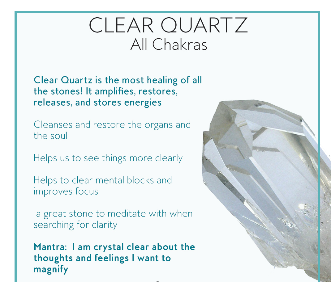 Crystal Quartz is a powerful healer that can be used in ALL CHAKRAS and influences ALL ZODIAC signs!