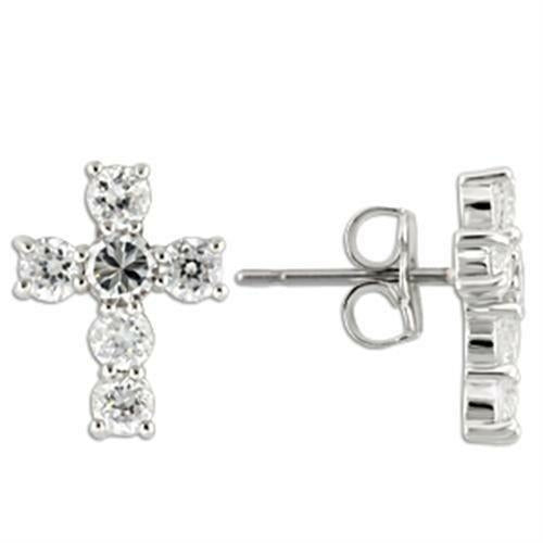 0W155 - Rhodium 925 Sterling Silver Earrings with AAA Grade CZ in