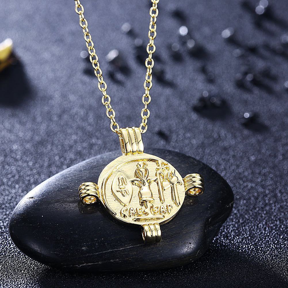 Ceaser Palace Medallion Pendant Necklace 14K Gold Plated