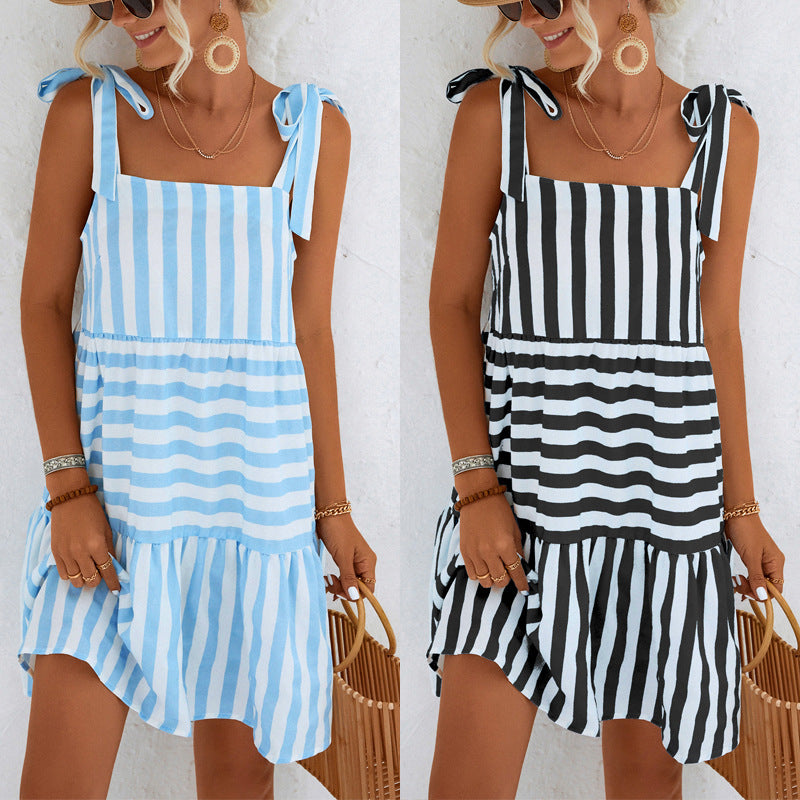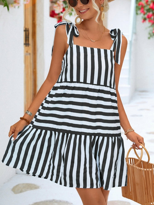 Chic Striped Design: The striped design adds a chic and stylish touch to the dress.