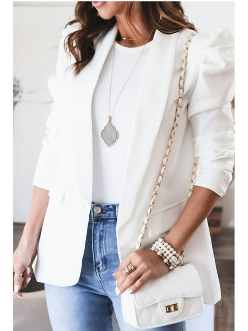 Jacket Blazers Coat Ruff Sleeve Loose White Casual Blazers