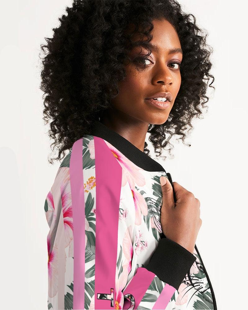 About The ArtTROPICS OF OZ - INTO THE WILD TROPICS OF OZ - Is a Tropical Themed motif aid upon Modern Streetwear Items with a hint of nostalgia. Reminiscent of the 90's Hip Hop Era Product DetailsHand-cut and crafted with care, your custom designed Women's Bomber Jacket will set off any look! Its lightweight, airy fabric is lined with the perfect amount of insulation for the chillier months making this a great year round go-to.