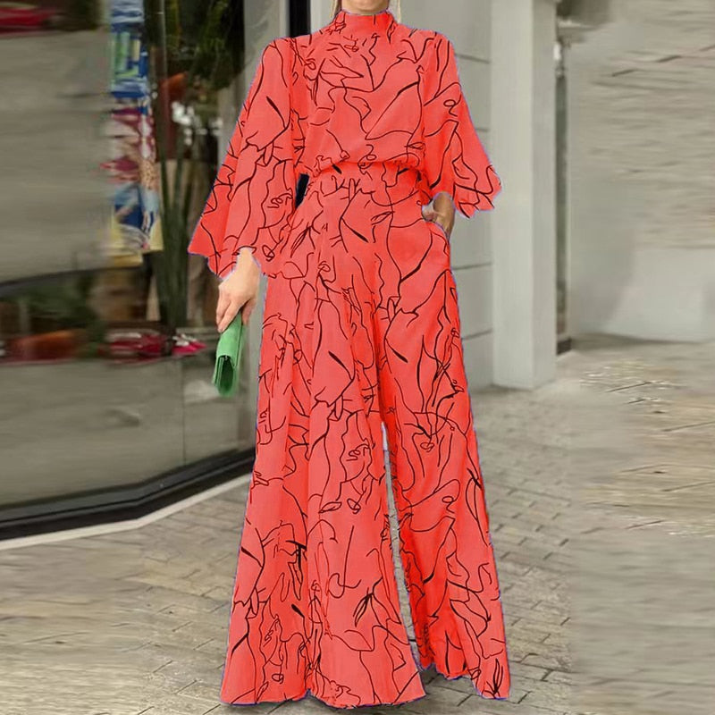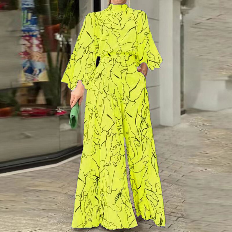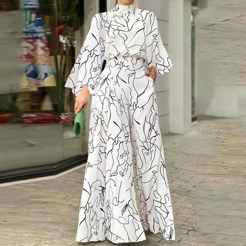 Women Trousers, Long Sleeve Graffiti Jumpsuit