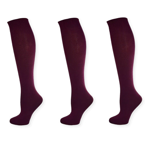 Classic Flat Knit Combed Cotton Knee High Socks 3 Pair Pack