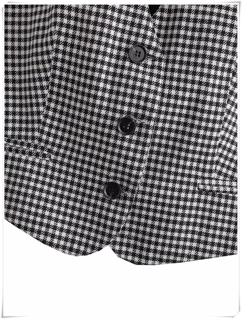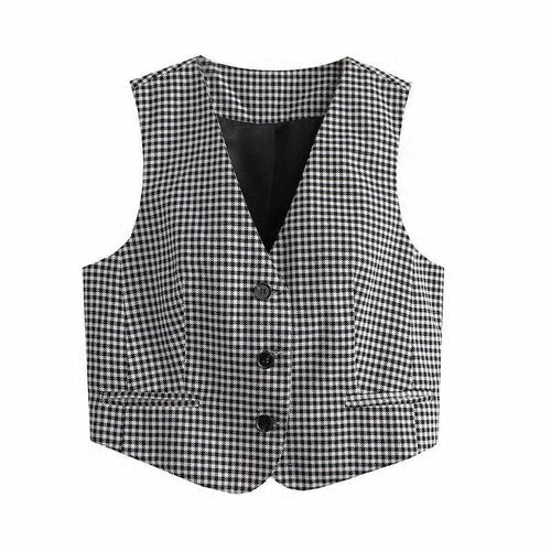 Black Plaid Vest V-Neck Sleeveless Chic Top