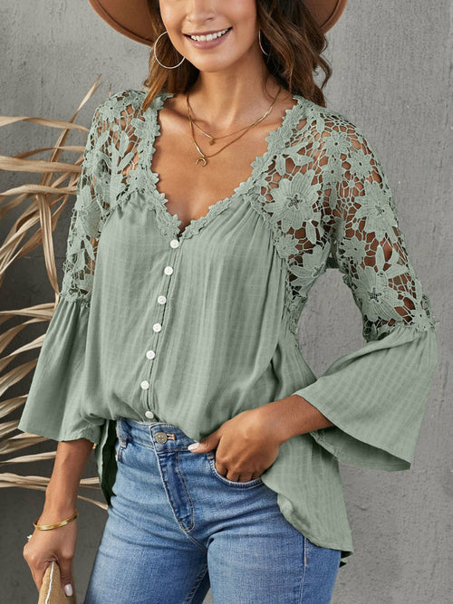 Lace Flare Sleeve Blouse