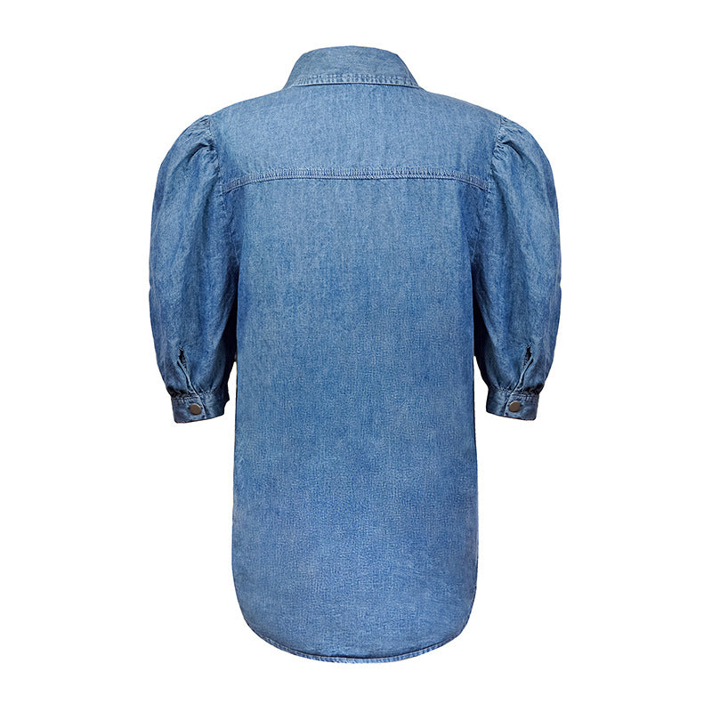 Puff Sleeve Elegant Turn-down Collar Denim Top