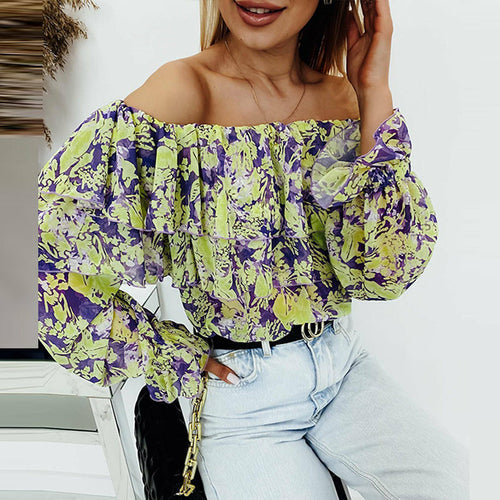 Slash Neck Long Sleeve Chiffon Blouse