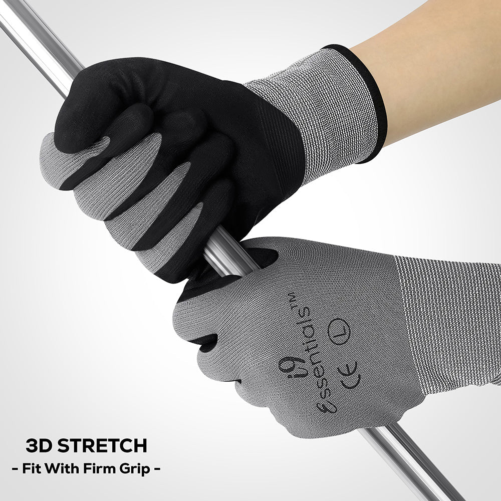 i9 Essentials nitrile work gloves protect your hands while you’re hard at work. The nitrile palm coating resists punctures, cuts, snags, and abrasion, all while keeping your hands dry. The lightweight, breathable fabric keeps your hands comfortable and dry. These gloves are ideal for farming, gardening, landscaping, cleaning, automotive use, and more. Its Material is cool and offers comfort and grip.