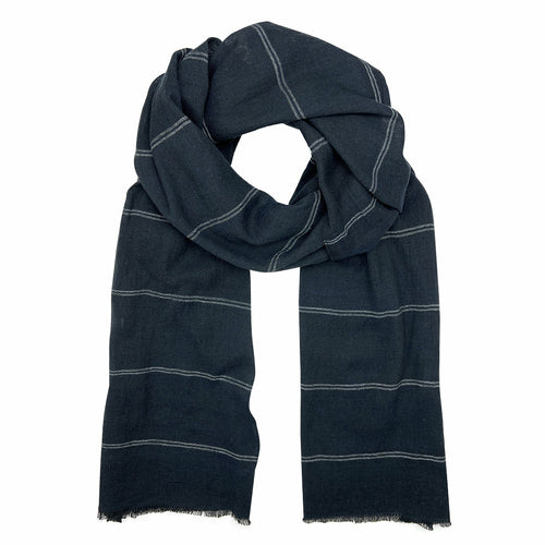 The lightweight scarf is hand woven on a black warp bringing out the rich colors. The size makes these the perfect scarf for men or women. Finished with eyelash fringe edges.